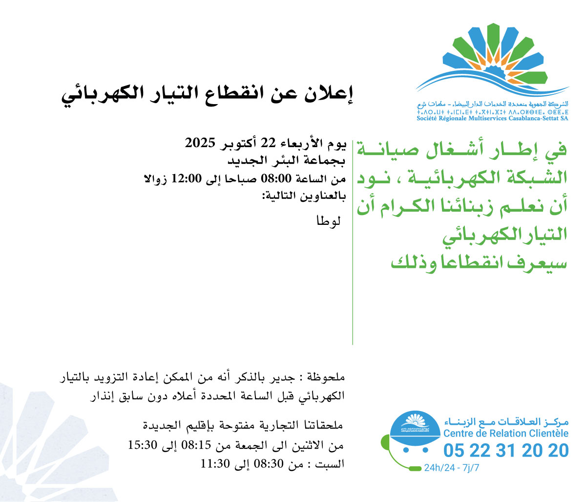 La Société Régionale Multiservices (SRM) Casablanca-Settat S.A est une société anonyme, créée en 2024, pour gérer le service public de distribution d’eau potable, d’électricité et d’assainissement liquide au niveau de la région Casablanca-Settat.